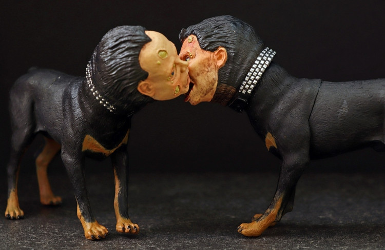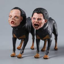 اکشن فیگور فردی با دو سگ و شعله آتش